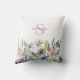 Fintvätt av blommigt, vildblomsfjärilsmonogram dekorativ kudde. Lätt att ändra texten. Söt vattenfärgsdesign.