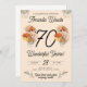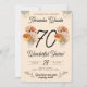 Ha sju decenniers glädje över den här charmerande blommigten! En framstående 70 omges av mjuk orange- och rosa-blommor med subtila löv i mjuka pastellnyanser, skapar den här perfekten för en 70-årsfirande. Lägg till namn och händelseinformation för att skapa ett speciellt PM. Det är en elegant till inbjudan gäster till en dag av glädje och minnen!