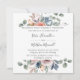 Önska dina gäster med den här andningsbjudande bröllopsinbjudan, med vackra handmålade vattenfärgade bouquet med exquisite grey och small blommor i en blandning av nyp, persikor, elfenben, mjuk korall, dammig blått, blått och grönt som ger dina bröllop-detaljer. Modern kalligrafi inslag. Kortet är tillbaka i elegantens dammiga blå skugga. En del av vår "Blissful Blommigt" Bröllop och evenemangssamling.