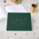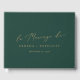Detta känsliga guld och grönt monogram back le mariage de gäst bok är perfekt för ett modernt bröllop. Den romantiska minimalistiska designen har fin och elegant champagne gyllene gult-typografi på en frammarsch grönt med ett rent och enkelt utseende. Anpassa ytterhöljet med namn på bruden och brudgummen och bröllop-datumet.