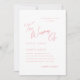 Den här enkla, chic och minimalistiska bröllopsinbjudan har en ren vit duk... med delikat, mejeriellt och kalligrafiskt designat i ett system för söt persiko-rosa färg.
