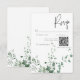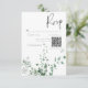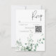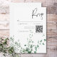Ta ett steg in i en värld av naturlig elegans med vårt tilltalande responskort från bröllop med QR-kod som är försedd med en mjuk vattenfärgsbit av ömtålig tropisk regnskog med grönt. Den här utformningen är full av naturens sköna skönhet och fångar det centrala i ett tropiskt paradis och uppmanar gästerna att gå med er på en resa till er dröm bröllop firande. Mot en pristinvit bakgrund tillför den verdant grönt foliage en aning färskhet och lugn, vilket anger perfektens tonläge för din speciella dag. Oavsett om du byter ut våtmarker i en tropisk trädgård eller tar regnskogens lydighet till platsen, lovar vår design att locka dina gäster och sätta upp scenen för en firande fylld med kärlek och naturskönhet. Låt din kärlek blomma mitt i naturens fantasi med vår tropiskt inspirerade bröllopssvit. Välj elegans, välj natur, välj minnen som ska vara under en livstid. Skapat av Farmhouse Press.