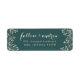 De här returetiketterna för blommigt av elegant är designade för att matcha vår fintvätt av inbjudan till Ram i Jasper-grönten och har och kräm-baby som ramar in din returadress, som sätts på en rik av juvel-tonad bakgrund av skogsbruk.