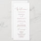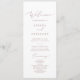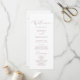 Detta känsliga bröllopsprogram i bröllopsfesten ro guld är perfekt för ett modernt bröllop. Den romantiska minimalistiska utformningen har en vacker och dammig elegant ro rosa-typografi på vit bakgrund med ett rent och enkelt utseende. Ta med namn i bruden och trimmen, datum och plats för bröllop, tack, serviceordning, brudens sida och ett minnesmärke "i kärleksfullt minne" som tillval.