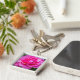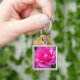 Delikat rosa ros. fyrkantig silverfärgad nyckelring