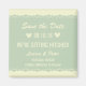 Det här känsliga spara datum magneter har en snöre-bakgrund med bröllop-detaljer skrivna i modernt teckensnitt.