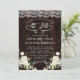 Unik utformning av vintagar med snöre gräns, handstil "Vid sista" och "Mottagning att följa"-skript, vattenfärgsvit, krämblomsterhörn, på en gammal ladubakgrund. Använda Anpassa verktyg om du vill lägga till din information. Fler idéer i min samling i Boho Bröllop.
