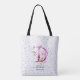 Vi presenterar "Delilahs fantasifulla blomsterinitialer-tote med blå kronblad". Denna anpassade tote handväska visar ett vackert tillverkat blommönstrat "D"-monogram mot en fantasifull blå bakgrund med kronbladsmönster, vilket ger elegans och en personlig touch. Perfekt för daglig användning, shopping eller som en genomtänkt present, kombinerar denna tote praktiskhet med boho-chic charm. Den livfulla designen förhöjer vilken outfit som helst, vilket gör den till ett måste-tillbehör för trendsetters. Perfekt för brudtärnor, lärare eller någon som letar efter en unik och stilren anpassad present.