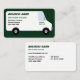 En enkel teckning i en leveransvagn är på kortets framsida. Ditt företags-namn, företagets slogan, namn, titel och mobila nummer trycks på försäljningsbilens sidopanel som om det vore målat där. Vattnet är vitt med grönt. Bilen dras i ett minimalistiskt, nästan tecknad stil. Bakom skåpbilen finns en solid mörk grönt bakgrund som följer med gröntens text. Baksidan har ytterligare kontaktinformation. Bra för följande typer av företag: lastning, leverans, transport, logistik, flytta, transport och andra företag som användor en stor skåpbil. Kortet kan också användas för mobila tjänster som städning, humanitärt lastbilar, livsmedel, handyman, rörmokare, elektriker, snickare, målare, hemanläggningar, hälsovård i hemmet, HVAC osv.