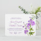 Vackra delphinium-spiken målade lila botaniska konstens vattenfärgade botaniska bröllopsinbjudan. Redigera den här bröllopsinbjudan med ditt eget namn, evenemangsdetaljer och ordalydelse. Andra matchande bröllop-artiklar tillgängliga. Unik design och originalfärgkonsmålning av vattenfärgsfärgkonst av Sarah Trett. www.sarahtrett.com för www.mylittleedenweddings.com