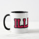 Den här anpassningsbarna kaffet mugg har en design som visningar ord "Illinois" i ett Kompot Slab-teckensnitt med rött brev svart kontur i den här anpassningsbarna, där stil är ett statligt tema. Behållaren och fälgen är glaserade i motsvarande färg i 11 eller 15 uns stora mikrovågsugn och säker keramikkonstruktion av diskmaskiner.