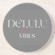 A stylish Delulu Vibes coaster featuring a soft grey aesthetic background, elegant white lettering, and a sweet red‑heart accent for a playful, girly finish. This modern design brings a fun touch of internet‑slang humour to her desk, coffee table, or bedside space, making it a perfect everyday accessory for anyone who loves aesthetic décor.