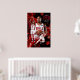 A high-impact digital poster design featuring Chicago Bulls star DeMar DeRozan. The artwork combines multiple action shots and a central portrait of DeRozan against a striking, swirling red background reminiscent of liquid paint or fire. Accents like the signature autumn maple leaves and the Chicago skyline emphasize his current team and the intensity of his game. Perfect for NBA fans and digital art collectors