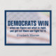 "Demokrater vinner när vi figur ut vad som är höger och går ut och kämpar för det." Elizabeth Warren. Designbeskrivning: Designutrymmet har blått gräns. I bakgrunden, en abstrakt USA-flagga som visar stars och stripes. Över det, lite vit lagrar för att ytterligare abstrakt flagga. I texten står det: "Demokrater vinner när vi i figur ut vad som är höger och går ut och kämpar för det." Under det, två tunna röda linjer och under det, namn på den som sa det, Massachusetts Senator Elizabeth Warren. Demokraterna vinner i stort sett med versaler, i samma blått som gräns. Under det står resten av texten i samma blå typsnitt, men med en liten inledande versal. Namn Elizabeth Warren har ett något större typsnitt, men i samma blått.