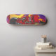 Flamande rött djävulen-skelett kramar hans gitarr och redo till sten! Den här färglösa skalldesignen gör din skateboard vig!