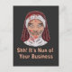 Den här Halloween-grafiken har en skrämmande bild av en demonnun med blod över hela hennes ansikte, vassa tänder och en läskig flin. Hon är redot att hemsöka era mardrömmar och skrämma vem som helst som kor hennes väg. Hon är inte här för att be för dig, hon är här för att be på dig. Typografi "SHH! DET ÄR INGET AV DITT FÖRETAG".