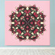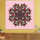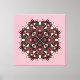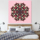Pastel goth canvas art i rosa och grönt som skildrar en skräckcirkus stil kaleidoskopisk illustration med ögon och horn.