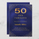 En marin blå, ojämn färgad bakgrund. Dekorerad med guldhörn. Anpassa och lägg till information om namn och party.
