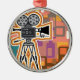 Den abstrakt bakgrundsfilmprojektorn filmar julgransprydnad metall