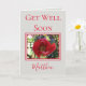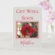 Ett personlighälsningkort för älskad, denna design presenterar en grå bakgrund med en älskvärd röd ros i mittet. "Få brunnen snart" är skriftligt upptill, och mottagarenamn kan vara personifierat längst ner. All text är i en härlig röd färg. Insidan presenterar ett härligt meddelande.