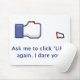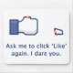 En mugg för folk som förargas med alla de "lika" förfrågan. Visar den klassiker"något liknande" symbolen med en avskild tum. Text läser som: "Fråga mig att klicka "något liknande" igen. Jag vågar dig.",