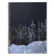 Tillbringa lite tyst tid i snövintvägens nattliga sammanfogning av anteckningar, tankar och muskler i den här bärbara datorn Serene Blue Winter Forest Spiral. Photo © Joshua J Barks