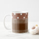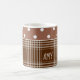 Anpassadekaffekopp. Vitstengods med kakao-brunt och vitpolka dots juxtaposed med denbrunt plädet. Skräddarsy din namn eller initialer i kvadrera. Välj även en olik stilsort!