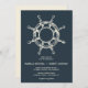 Nautical chic bröllopsinbjudan innehåller en vintage stil hand plockade frakts hjulillustration i beige färg på marin blå Perfekt för strand, sommar eller nautisk bröllop. Den här designen ingår i en samling. Besök vår butik för att hitta matchande artiklar. Kontakta oss på citronelladesign@gmail.com om du vill ha anpassningsbar