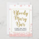 Denna moderna för den blodiga möhippa Mary för blommigten "puben" undertecknar särdrag som en rosa blom- bakgrund med guld- glitter plaskar. Texten är skriftlig i en blandning av en skämtsam calligraphystilsort och ett modernt sans stilsort.
