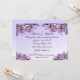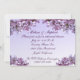 Lilor är temat av denna brölloprepetition middaginbjudan. Bekläda presenterar rosa och mauve lilasprejer på en purpurfärgad bakgrund. Baksidaen har mer blommar. Skräddarsy texten för ditt speciella tillfälle.