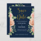 Undervattensblått Guld Blommigt Bröllop-datumkort. rosa blommigt bröllop spara datum-kort med ro blommor med vattenfärg. Matchande objekt är tillgängliga.