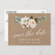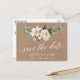 Modern kalligrafi, Elegant botaniska Blommigt, Grey Förlovning Notice Save Date Kraft Postcard omfattar peonies, lilies, bomull, eukalyptus löv och annan vacker grey.