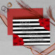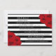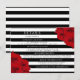 Den chic moderna lyxiga bröllopssamlingen har en klassisk svart-vit randig bakgrund som accentueras med vackra rubinröda rosor.