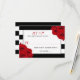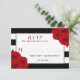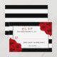 Den chic moderna lyxiga bröllopssamlingen har en klassisk svart-vit randig bakgrund som accentueras med vackra rubinröda rosor.
