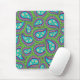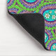 En mus vadderar med en grönt- och lilapaisley design. Paisleyen har daisy i mittet mot ett ljust - slösa bakgrund.