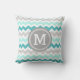 Eleganta och moderna ljusa randar för sicksackar för sparre för för för krickaturkosblått, grått och vit mönstrar den dekorativa dekorativ kudde för den beställnings- monogramen. Fullständigt anpassadet, tillfogar ditt eget märka med sina initialer för ett riktigt unikt hem- dekorobjekt.