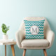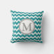 Eleganta och moderna randar för sicksackar för sparre för för för turkoskrickablått, grått och vit mönstrar den dekorativa dekorativ kudde för den beställnings- monogramen. Fullständigt anpassadet, tillfogar ditt eget märka med sina initialer för ett riktigt unikt hem- dekorobjekt.