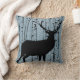 Stor och DJÄRV hjort arrangerar silhouetten på jean kudder för någon naturälskare. Presenterar björkträd i bakgrunden.