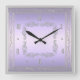 Den eleganta lila- och silverväggen tar tid på fyrkantig klocka