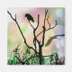 Enbart kråka på gren i silhuett mot en solnedgång i färgaden himlar som en Underbar blå Heron flyger bort... Tillverkad genom att kombinera två foton som jag tog tillsammans och färgstark redigering