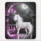"The Enchanted Unicorn" En majestät vit unicorn står på ett beundransvärt sätt på en stenplattform som är uppbyggd av höga, gotiska bågar. Hennes mane flödar försiktigt, glöms bort i månljuset, medan en mjuk halo av dimma och magi krymper henne. Unicorns horn skiner med eterljus och kastar en mjuk glöd över mörken. Omkring henne flyter, glöder rosa ljus som är upphängda i luft som tysta meningar. Spridning av ljusstrålar stiga upp från marken och flyt uppåt, vilket ger scenen en känsla av förtjusning. Bakom henne blåser blek ro ut längs med arkåren, och en mjuk, drömmande dimma kryper längs golv, ge hela utrymmet som en mystisk, annan världslig känsla.. Det är som om tiden har pausats - ett hemligt ögonblick i en gömt sfär där magin fortfarande blir kvar.
