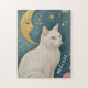 Den fantastiska vitkatten med Grönt Ögon Pussel