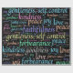 Den här presentfigurationen firar frukten av Heligan Spirit i vårt dagliga liv. Kärlek, glädje, fred, överseende, godhet, godhet, trohet, mildhet och självkontroll är de nio särdragen hos Heliga Spirits frukt som framkallar det väsentliga i Guds närvaro inom oss. I mjuk, blek färg, placeras varje ord noga i en ord molnkonstruktion som representerar Guds välsignelse. Bakgrunden till mörken understryker kontrasten och vikten av Heligan Spirits frukt. Bibeln är Guds inspirerade ord och lyfter fram denna förståelse och inspirerar oss att producera frukten av Heligans anda i vårt dagliga liv. Vare sig det är för ett barns födelsedag eller en vuxens speciella tilldragelse, påminner den här presentfigurationen oss om det verkliga syftet med vår frälsning - att bära frukt för Guds ära.