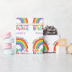 Den färgrika födelsedagregnbågepersonligen lurar flickafödelsedagen som slår in papper. Den nätt regnbågen i rött, orange, gulnar, görar grön, blått och lilor med denfärgade ord som ut stavar HOPP som DU HAR EN FÄRGRIK FÖDELSEDAG. Personifiera med barnets namn i nätt purpurfärgad stilsort. Roligt skräddarsy gåvasjalen för flickor som älskar regnbågar eller en themed födelsedagsfest för regnbåge.