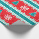 Jul som slår in papper med snöflingor och julgranar.