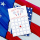Den fjärde juli-filmaren och fyrverkeripjäsen bingo-spelkortet i rött vitt och blått. Baksidan innehåller en mönster av vita stjärnor på blå.