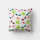 En kudde som presenterar ett mönster av rosa flamingos, grön flinflip flops, och rosa- och blåttsolglasögon.
