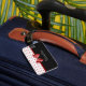 Den flickaktigt röda och svart polkaen pricker bagagebricka