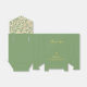 Bakgrunden är grönt. Fallen mönster är den av William Morris (1834-1896) designade "Willow Bough" i vintage mönster, som nu är offentlig, som har gett grenar grönt löv. Texten är skriven i guldgruvan och har en (faux) guld kor ovanför den. Namn (och det meddelande som Tacken täcks av klaffen) skrivs i ett kalligrafiskt skript för elegant, resten med versaler.
