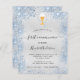 Faux silver metallisk tittar bakgrund dekorerad med blå faux glitter stoft en guldkrita och en värd. Anpassa och lägg till namn och mottagningsdetaljer. Svart färgad brev.